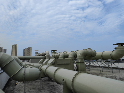 調查室印刷廢氣 → 幾丁質酶炭管道過濾器器 → 引新風機 → 減排